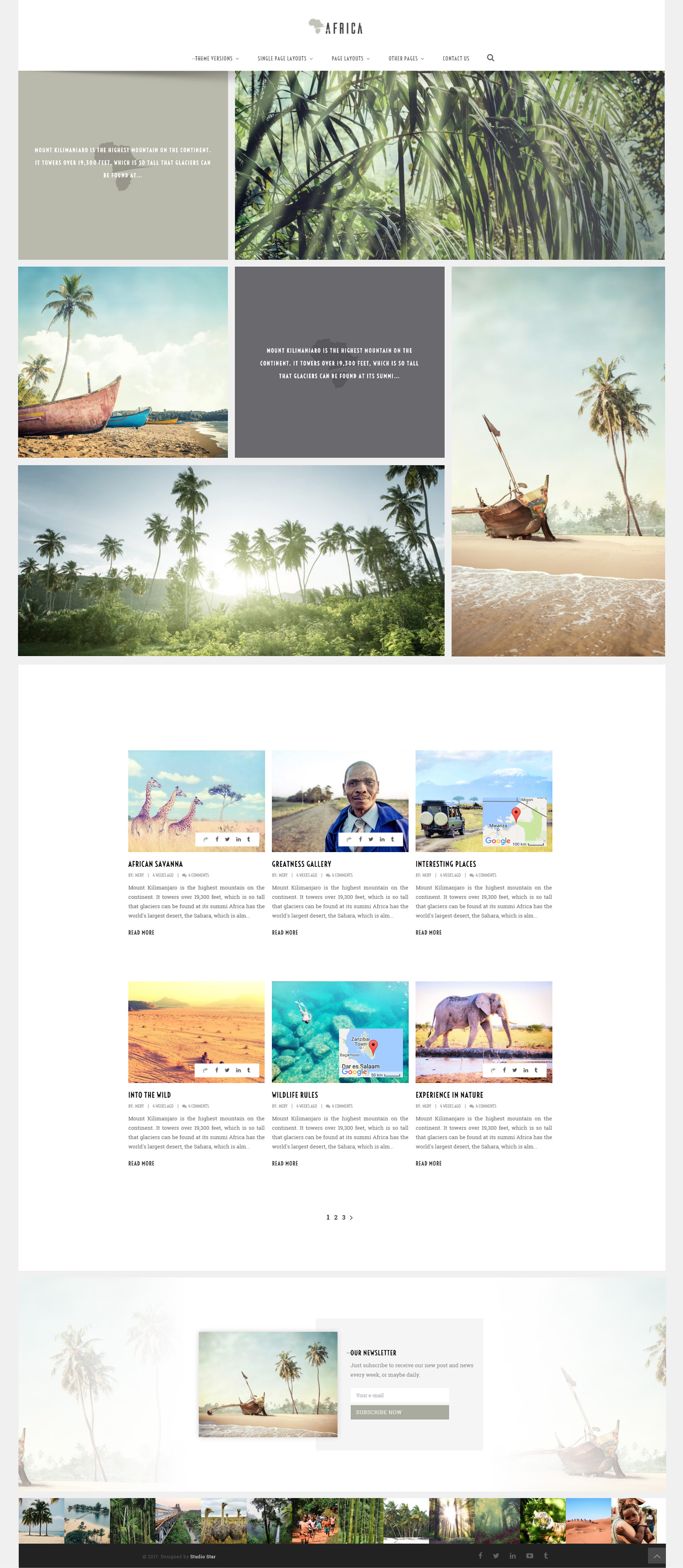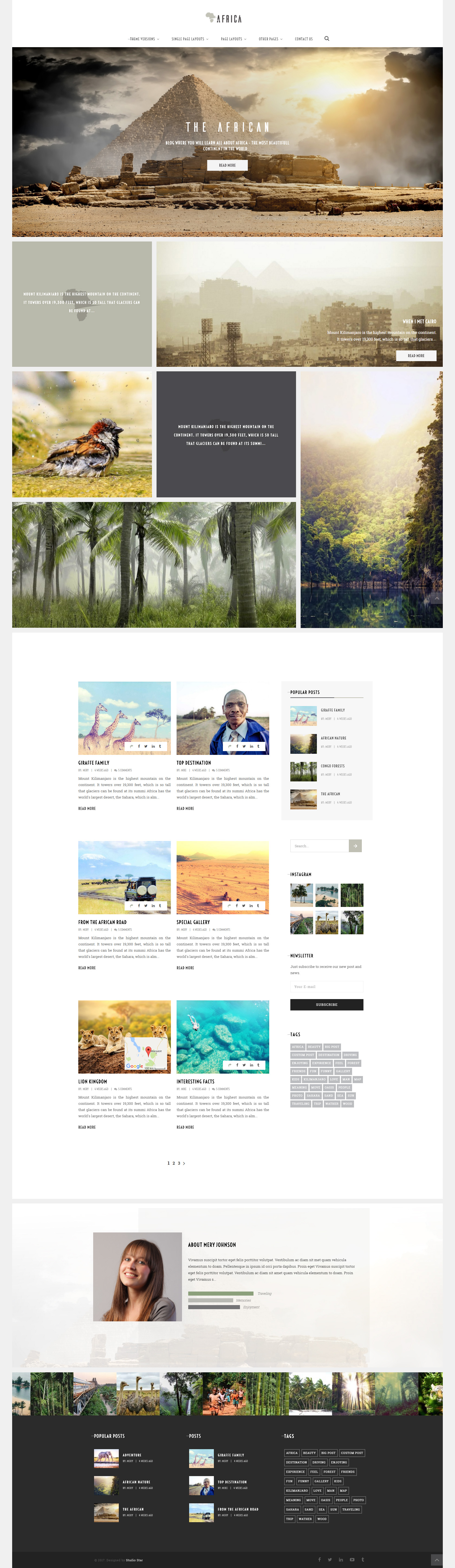 Fully featured Wordpress theme for bloggers and adventurers. Mark visited places, display interesting images and share your experiences with the world.