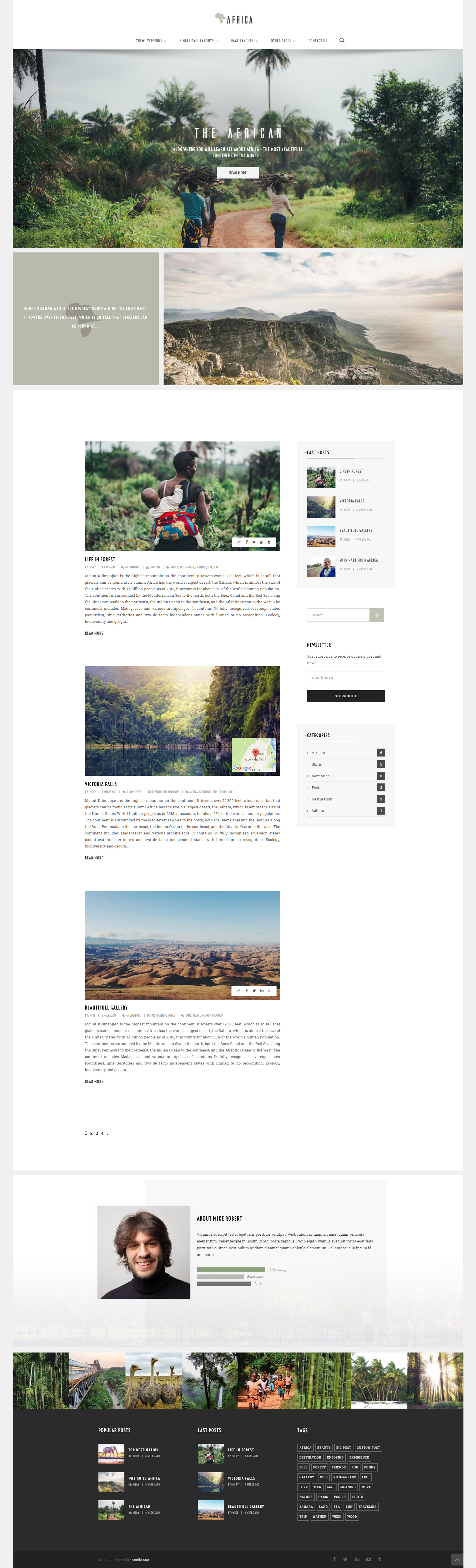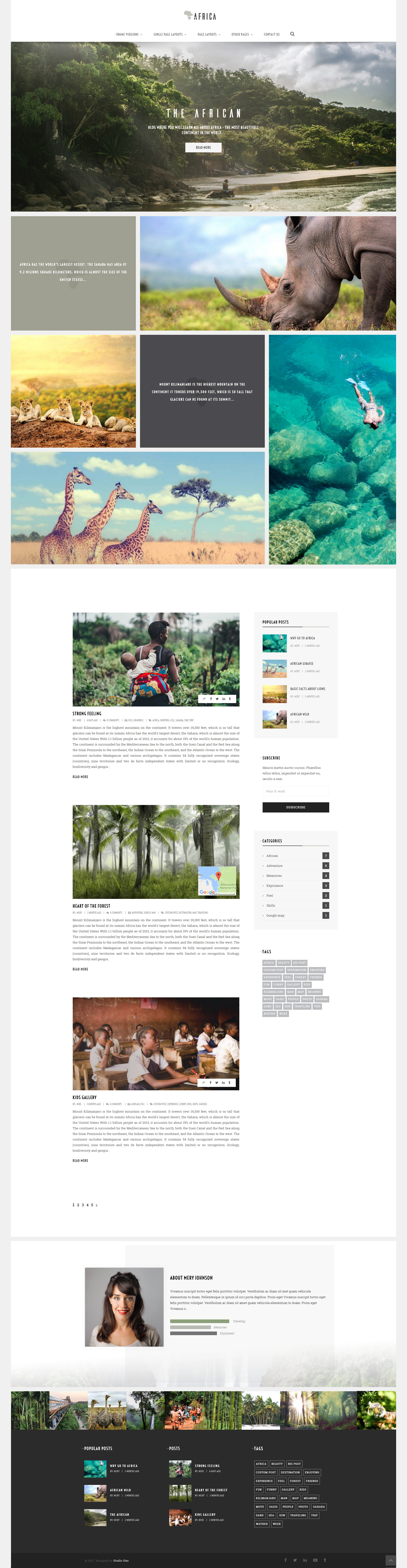 Fully featured Wordpress theme for bloggers and adventurers. Mark visited places, display interesting images and share your experiences with the world.